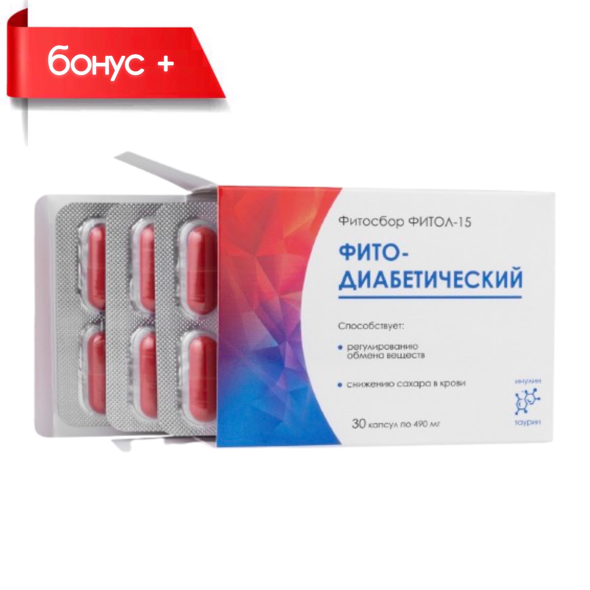 Инулин, таурин, экстракт галеги. Вспомогательные компоненты: оболочка капсулы: желатин, краситель.